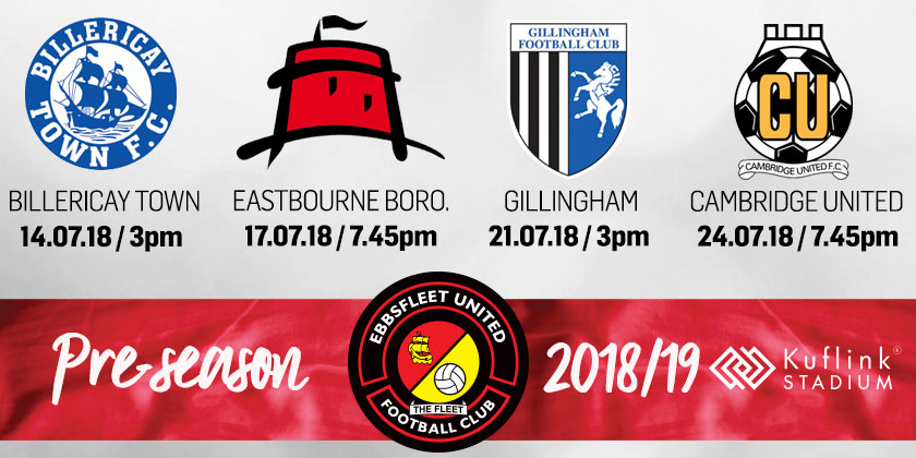 The club can confirm four home games against a mixture of non-league and EFL opposition, with Billericay Town, Eastbourne Borough, Gillingham and Cambridge United due to visit the Kuflink Stadium in July.