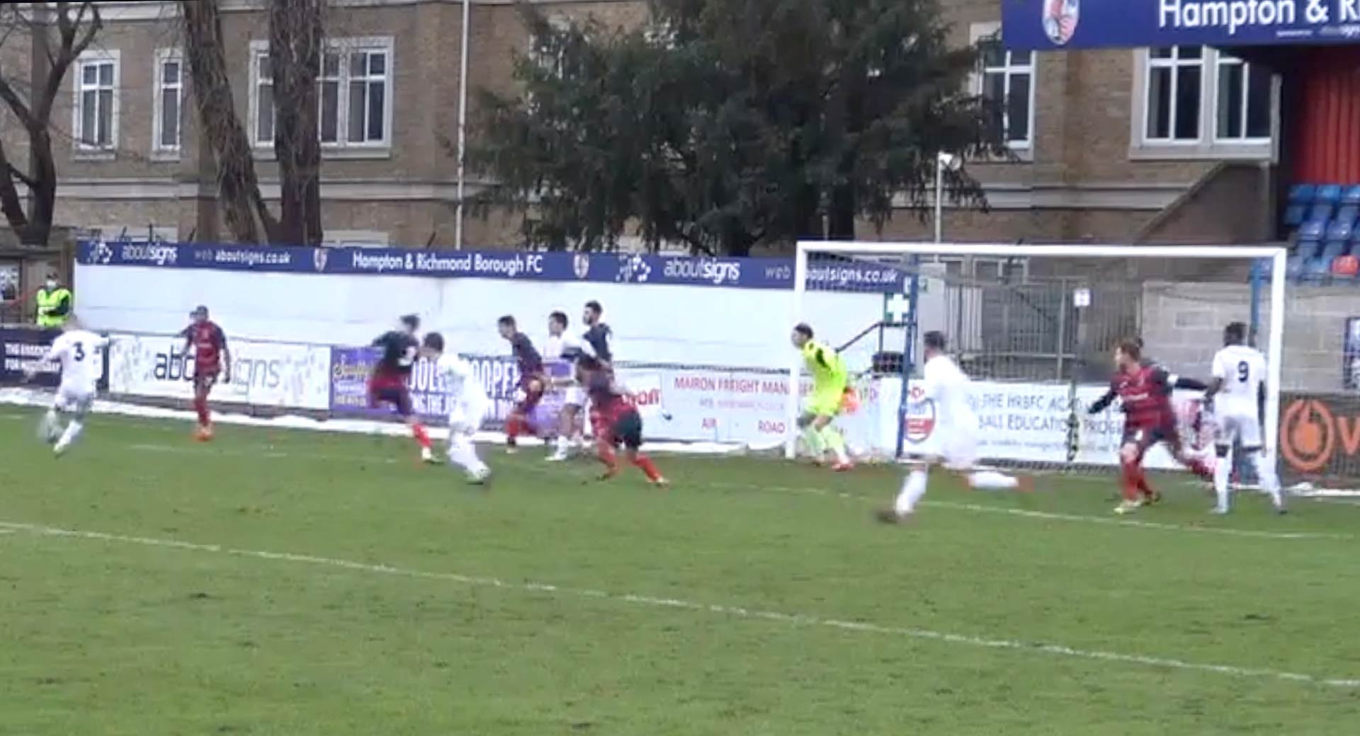 And Kutrieb was also unhappy with the offside decision that cancelled out Rakish Bingham’s 35th minute ‘goal’ from a corner, with video evidence suggesting there were two culprits in the Hampton defence playing Bingham onside.