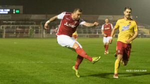 “I’m very pleased,” he said. “It was always going to be a tough game. Certainly a game where we had to get three points, anything less would have been damaging for us with out hopes and ambitions of the top seven. The first 45 minutes was the best I’ve seen from an Ebbsfleet team since coming in charge in November. The movement, the strength and picking so many of the second balls up all over the park, they struggled to contain us.