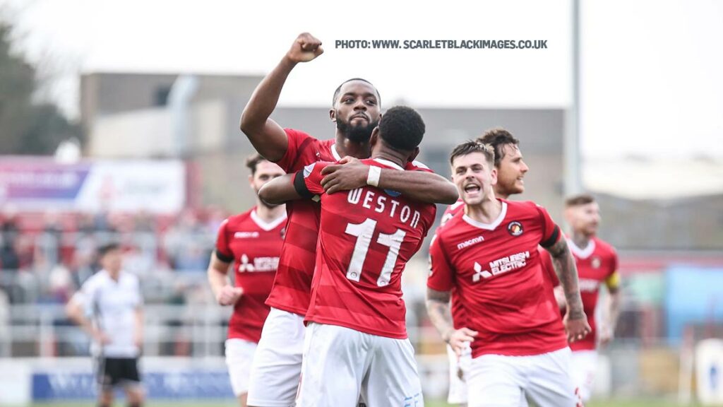 “I’m very pleased,” he said. “It was always going to be a tough game. Certainly a game where we had to get three points, anything less would have been damaging for us with out hopes and ambitions of the top seven. The first 45 minutes was the best I’ve seen from an Ebbsfleet team since coming in charge in November. The movement, the strength and picking so many of the second balls up all over the park, they struggled to contain us.