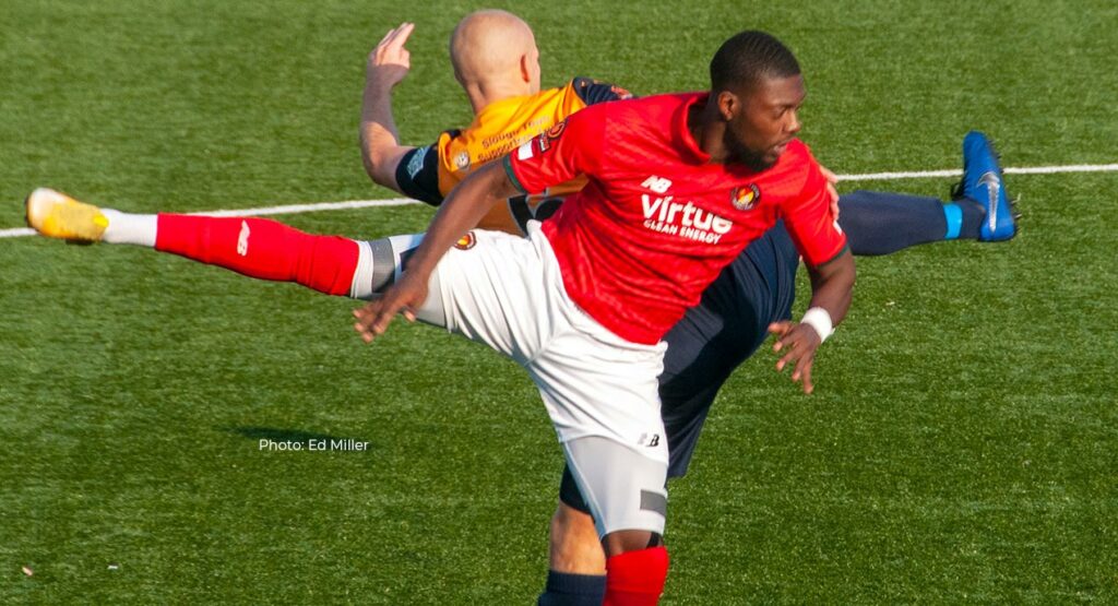Dennis Kutrieb has placed no specific goal targets for his front men this season – just so long as they score when it’s important! And the Fleet boss praised Rakish Bingham’s coolness in converting his penalty kick as an “important” goal to get the visitors right back in the game before half-time at Slough Town.