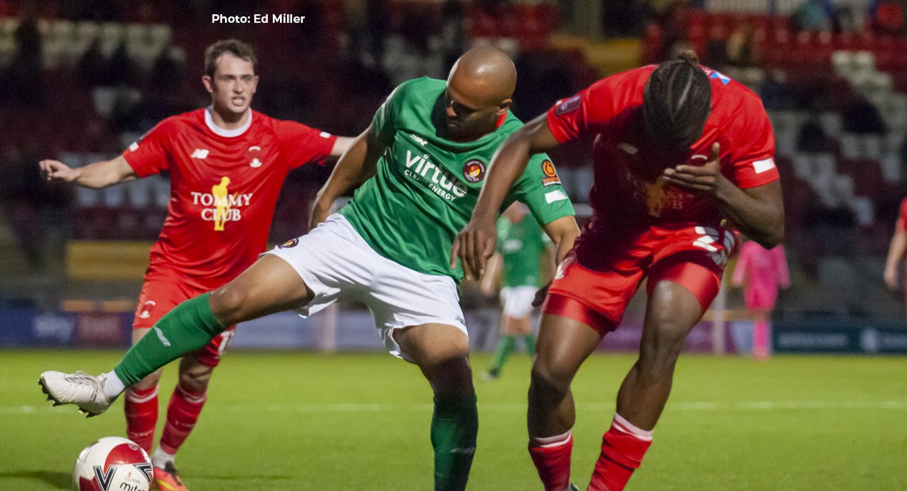 Two leagues apart but just one goal the margin at the end of this Emirates FA Cup tie and that was all that stood between the Fleet and a third consecutive 1-1 draw at the Breyer Group Stadium. A strong second-half performance from the visitors wasn’t able to haul back the only goal of the game, scored by the home side’s top scorer Aaron Drinan 24 minutes in.