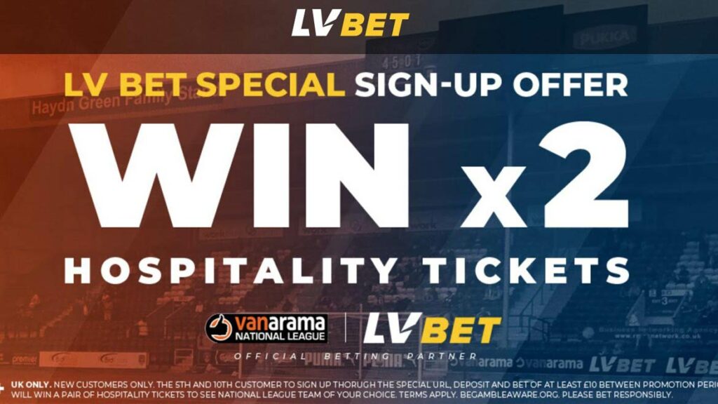 18+ UK only. New customers only. Gamble responsibly.Full terms and conditions: https://lvbet.com/en/landing-pages/national-league-hospitality-promotion