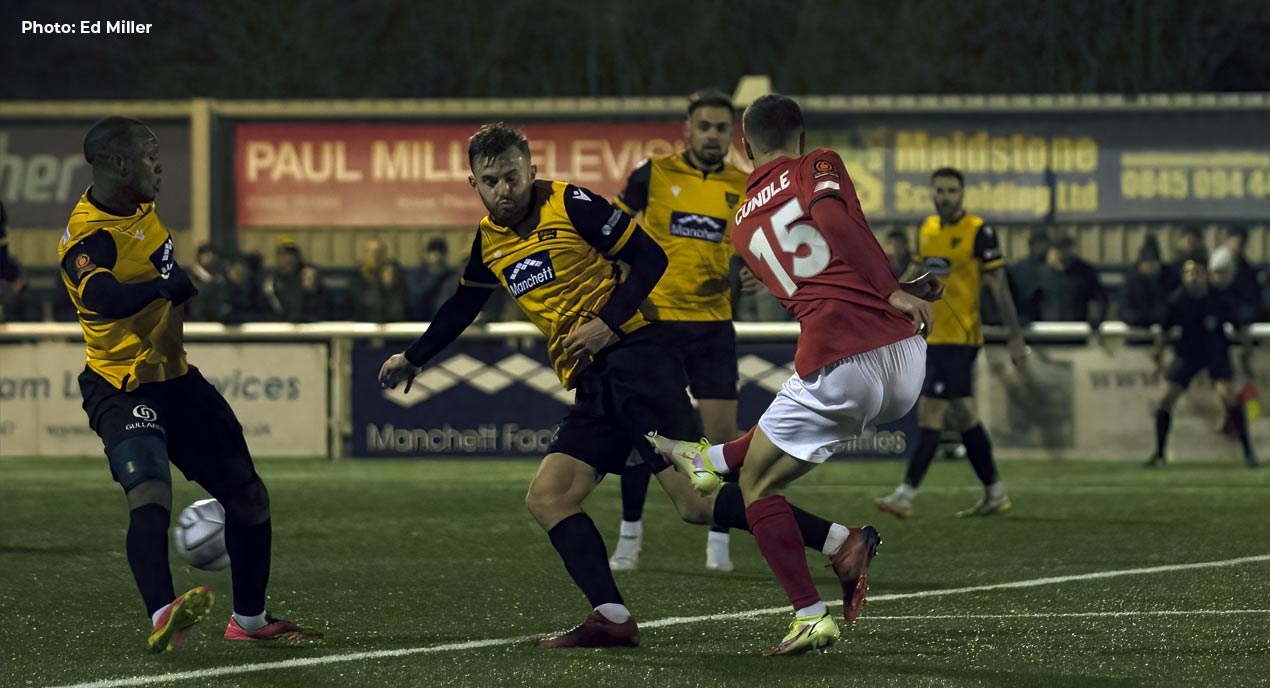 The visitors couldn’t quite muster the tempo they needed to get back on level terms and though Cundle and Paxman were willing runners as they toiled to make in-roads in the Maidstone half, there was a struggle to create anything too threatening.