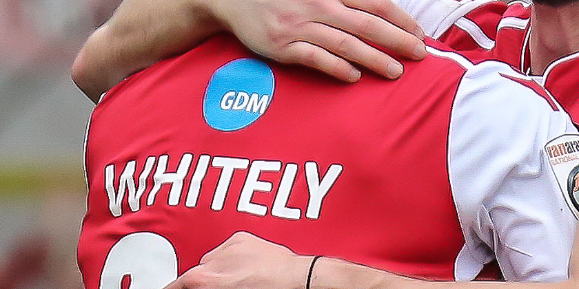 Craig Scott, director of GDM Partnership, responded: “We are delighted to have extended our ‘back-of-shirt’ sponsorship for the upcoming 2018/19 season. Our involvement with the club over the last few years has been a very enjoyable one both on and off the pitch. It was another exciting season with some great football being played and to make it to the play-off semi-finals in the first season back in the National League is a credit to all involved in the club.