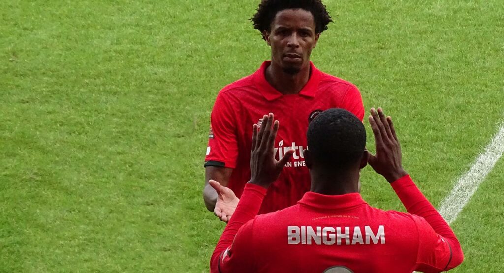 “Teams can do what they want with their pitch,” said the Fleet boss following comments about Chelmsford’s bumpy pitch last Bank Holiday. “I would do the same. I would do everything to get a win, it’s home advantage. We as the visitors have to adapt, we have to get on with it. Pitch conditions are no excuse. Hampton last season was very challenging because of the weather that month and Hampton did brilliantly to get that game on. We managed to play some great football on that despite everything and yes, we lost the game late on, but we would not use pitches as an excuse.