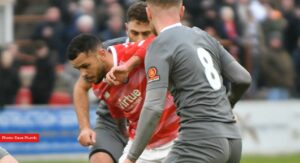 Michael Cheek scored his first goal for the Fleet in the fixture against Havant at the Kuflink Stadium back in October (pictured above) in an otherwise disappointing 1-1 draw.