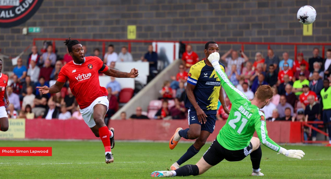 Fleet fans will be happy enough if this first return fixture of 2023/24 goes in any way similarly to the August game at the Kuflink Stadium with the three points awarded to the home side. Three goals and a clean sheet produced two goals from Dominic Poleon and a strike from Luke O’Neill. The visitors did play a high percentage of the match with 10 men when Alex Penny was dismissed in the 34th minute.