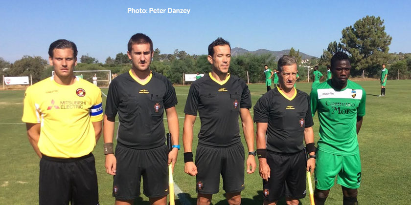 Daryl McMahon’s men, sporting their new yellow away kit, were not at all fazed against a good Portuguese tier-two outfit in a game that consisted of three half-hour periods.