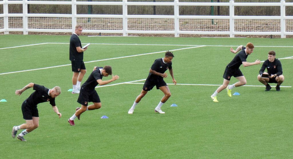 Fleet’s Head of Performance Lee Taylor put the players through a series of short, high-intensity sessions across three hours, with the squad’s new GPS trackers enabling live analysis of their performance.