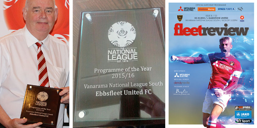 Ebbsfleet United’s matchday programme Fleet Review was voted as Programme of the Year for season 2015/16 at the National League AGM on Saturday.