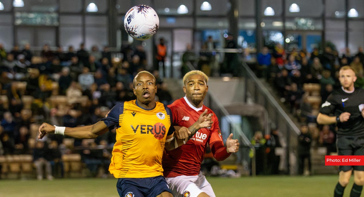 A glimpse of goal appeared in the 13th minute for the Fleet with a neat run from Franklin Domi and a shot that won the visitors their first corner. Trying to put goalkeeper Rohan Luthra under pressure from those after his handling on Saturday, Fleet never really unsettled the Cardiff loanee this time and he punched clear. Domi saw sight of goal once again with a free-kick delivery from a tight angle but Tyrese Dyce cleared with his head from the goalline.