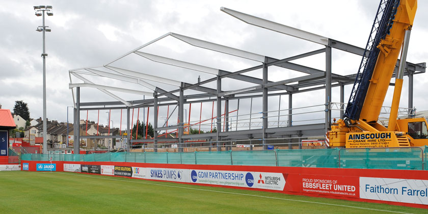 Construction of the superstructure itself has been divided into four quarters due to the narrow nature of the site we are working with. This way it allows several trades to overlap each other on site before moving on to the next section. Now seeing the framework going together and rising up, it gives an overview of how imposing the new main stand will be once complete.
