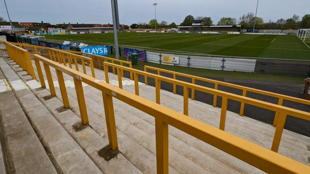 Away fans will be placed in the Parkside Terrace. They should enter through turnstiles 5 and 6 which is by Gate B. Enter through the park off Collingwood Road. Sutton’s ticketing website will show the away fans section as the Curva Terrace. For this specific game, the Curva Terrace will not be used.