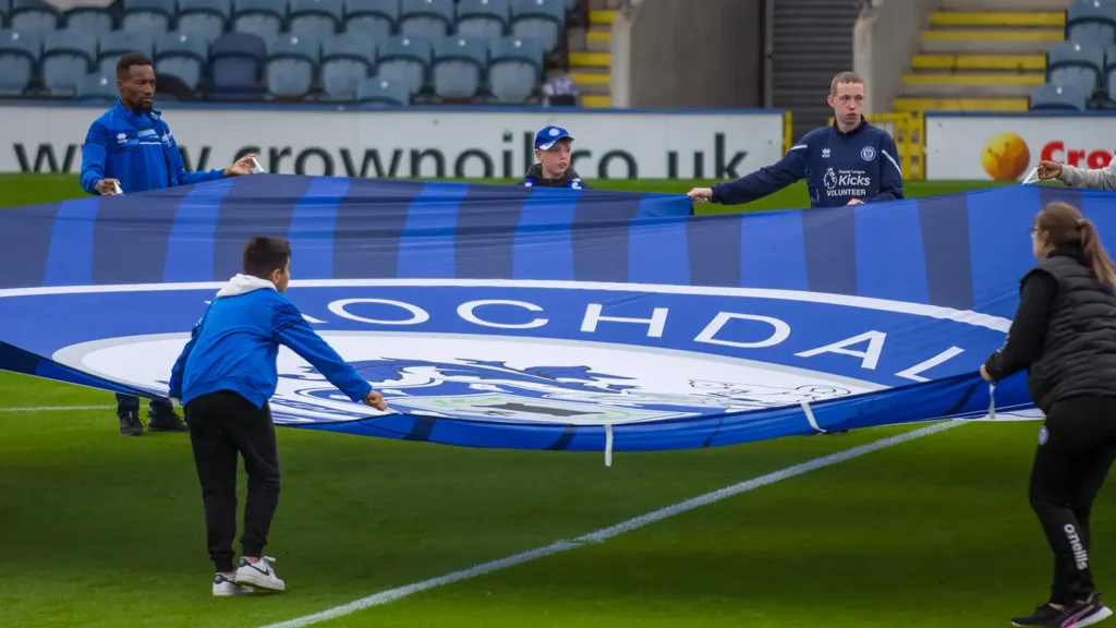 Rochdale have six wheelchair spaces and carer slots available allocated in the same U Block – Pearl Street Family Stand.