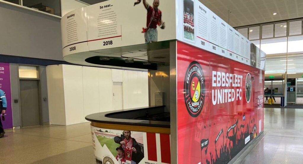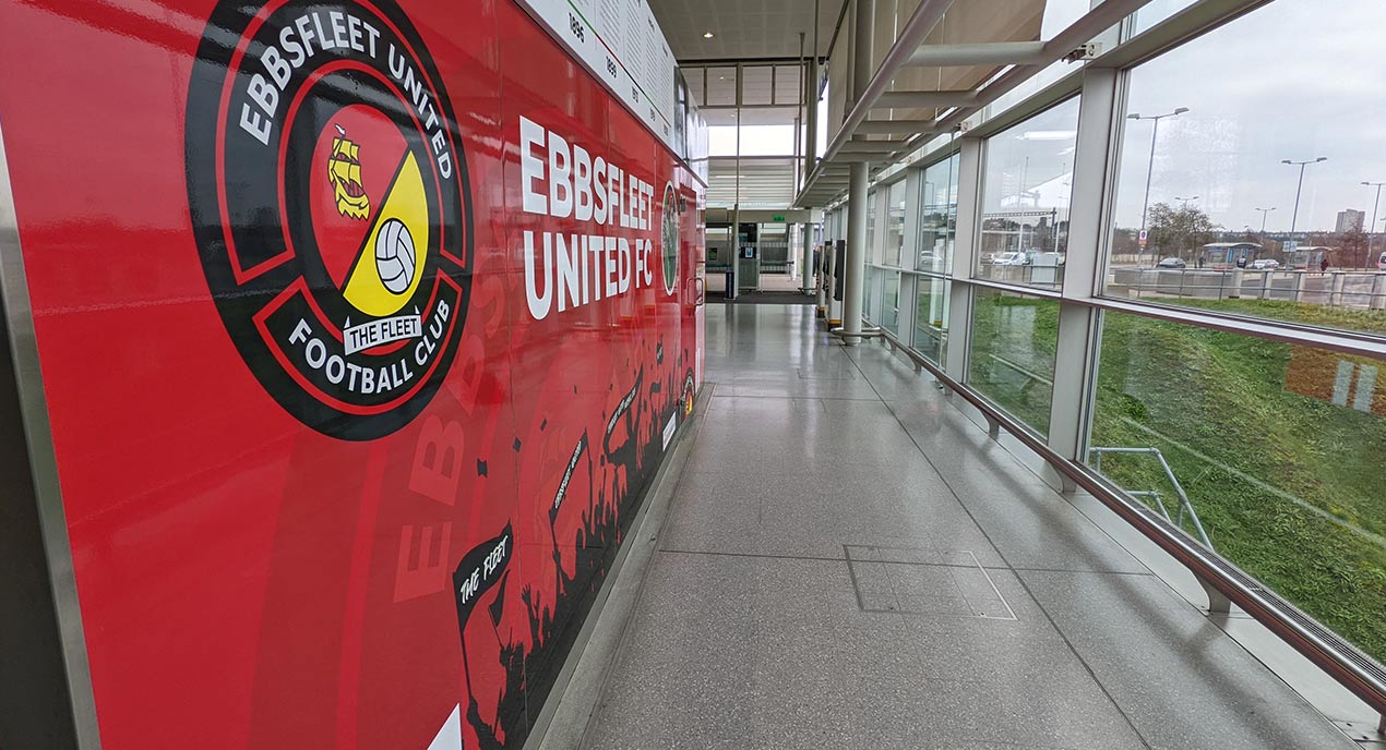 Fleet CEO Damian Irvine said of the two branding projects, “These are developments that have been planned for some time as part of our desire to make Ebbsfleet United much more visible in the local area. Lockdown and the ongoing Covid situation has meant we have had to wait until 2022 to unveil our hub at Ebbsfleet International Station – but we now have a hugely visible and eye-catching presence that will showcase all that is good about our football club to thousands of rail passengers every day – it will benefit the football operation at the club as well as our growing non-matchday portfolio including venue hire and events.