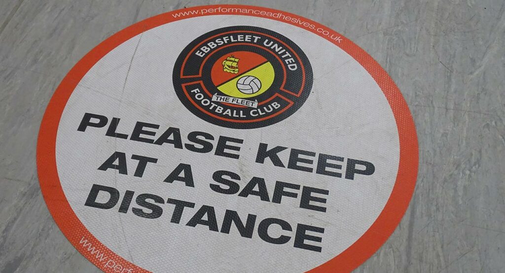 • When inside the premises (Main Stand bar, social club etc), face coverings should be worn when moving around. They may be removed if seated/standing at your table/drinking and eating – and social distancing should be observed.
