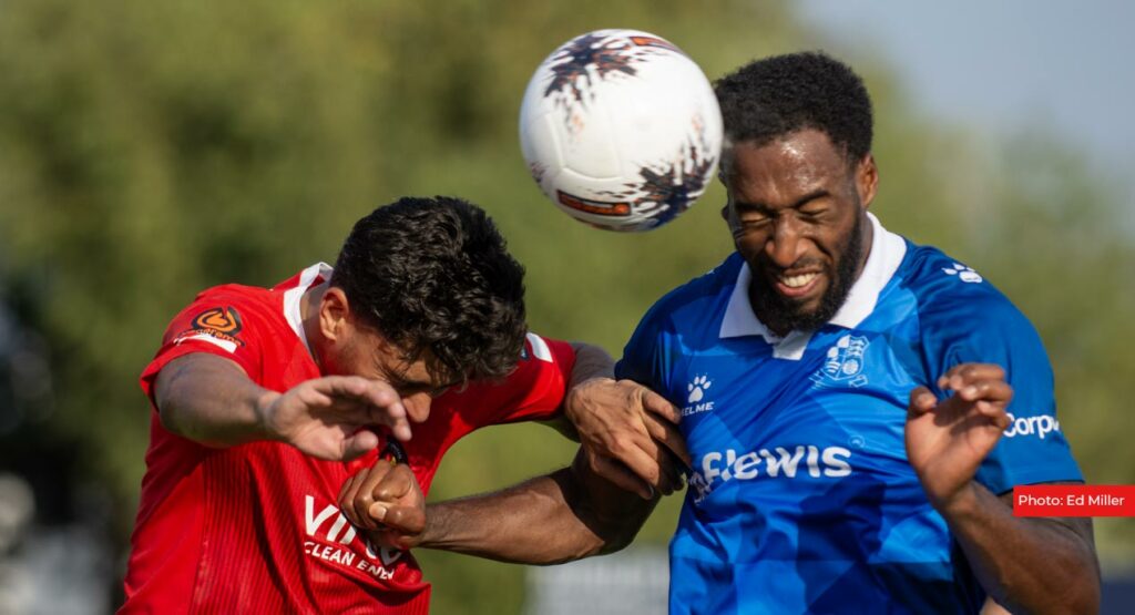 A drinks break was in place in soaring temperatures and the Fleet started with more confidence after that – Ben Chapman sent a low delivery into the area in an attempt to pick out a fellow Fleet player. However it was Ward who collected. Wealdstone countered from the Fleet’s initial shot and Cousins once again made.a sublime one-handed save to keep a Micah Obiero effort out. His mid-air leap to reach the ball was almost as impressive as the save itself.