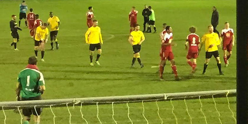 The miss only roused the Fleet fans behind the goal to louder levels of support and the game really opened up as the visitors kept pressing. Whitehawk had their first attack of note since the break on 70 minutes but Hall gathered well with Mills and Robinson ready to take seconds from Scott Neilson’s shot on target.