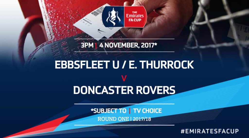 Whoever emerges triumphant from Tuesday night’s replay between Ebbsfleet United and East Thurrock United at Stonebridge Road will reap the reward of a home tie against Doncaster Rovers in Round One of the Emirates FA Cup.
